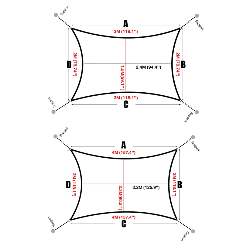 For Rectangle shade sail: 3x2M, 3x4M